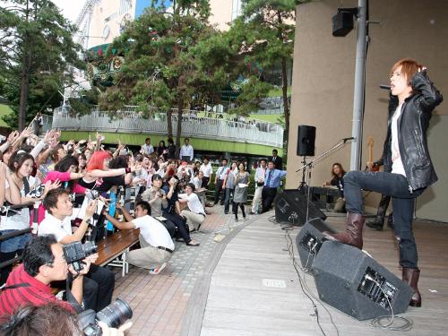 竹下登元首相の孫のDAIGO(30)によるロックユニット「BREAKERZ(ブレイカーズ)」が23日、都内で新作シングル「世界は踊る/灼熱」の発売記念イベントを行った。DAIGOは胸の前で腕をクロスさせ「よろしくうぃっしゅ」とお決まりのポーズ。前作はオリコンチャート10位を記録しており「今度は上を目指して9位を狙う。もしくは現状維持の10位」と、意外にも控えめ?な目標を掲げた。12月には全国ツアーを開催。会場に集まった女性ファンら3000人に「ブレイカーズの活動、ガチでやりたい」と呼びかけ、新曲を披露した。