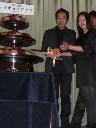 優秀賞を受賞した男性ファンと写真に収まる長山洋子