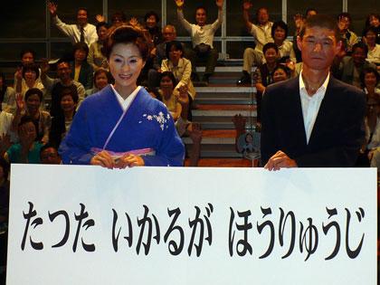 もともとの歌詞「金木 中里 五所川原」を「竜田 斑鳩 法隆寺」に替え、作者の男性ファンとともにステージで替え歌をデュエット。「時間をかけて考えてくれてありがたいです」と笑顔を見せた。さらにNHK紅白歌合戦について「ファンの方々に盛り上げていただいてるので恩返しできるように頑張りたい」と15度目の出場に意欲的だった。