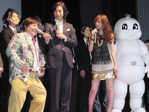 美男子に変身できる魔法のスーツがテーマの映画「ハンサム★スーツ」の試写会が22日、都内で行われた。スーツ使用前の塚地武雅(36)、使用後の谷原章介(36)、ヒロインの北川景子(22)が舞台あいさつ。谷原は塚地を「ブサイクといっても愛されるブサイクですから」とフォローしたが、塚地は「結局、ブサイクやないか」とぶ然。塚地は劇中に登場するギャグ「コマネチ」まで生で披露させられ“笑われ役”に徹していた。11月1日公開。