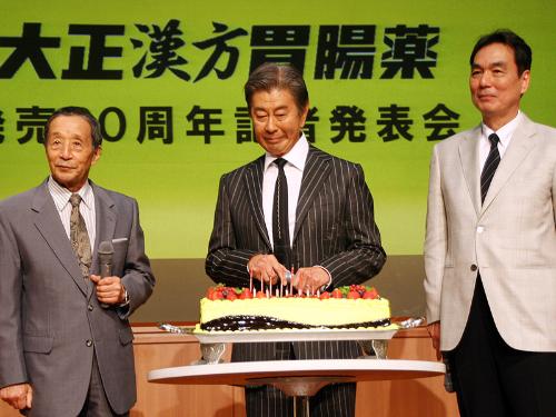 大正製薬「大正漢方胃腸薬」の発売30周年記者発表会が24日、都内で開かれ、俳優の宇津井健(77)らCM出演者が出席した。6代続く「ミスター漢方」俳優のうち、宇津井は2代目で、この日が誕生日。喜寿を迎え「役者は70を過ぎてから。これからもいい役者でいたい」と話した。3代目の田中邦衛(75)と6代目で現在出演中の長塚京三(63)も出席。田中は「踊りを必死に練習したのと海外ロケが楽しかったのがいい思い出」と振り返り、長塚は「歴代出演者が元気なのは胃腸が元気なおかげ」と話した。