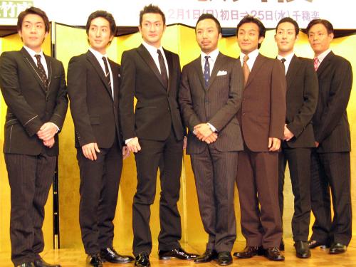 大阪松竹座の来年2月公演「花形歌舞伎」の製作発表が26日、都内で行われ、中村獅童(36)が参加した。獅童は初挑戦の演目「吹雪峠」で、兄貴分の女房と駆け落ちし、吹雪で逃げ込んだ山小屋でその兄貴と再会するという“極限状態に陥る”男を演じる。竹内結子(28)との長期離婚交渉を思い浮かべたのか「(私生活では)追い詰められっぱなし。皆さんもよくお分かりでしょ?」と話し、笑いを誘った。2月1日初日。