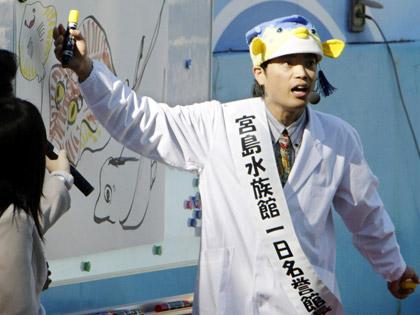30日はタレントのさかなクンが一日名誉館長を務め、来館者は魚の名前を当てるクイズやアシカショーなどを楽しんだ。