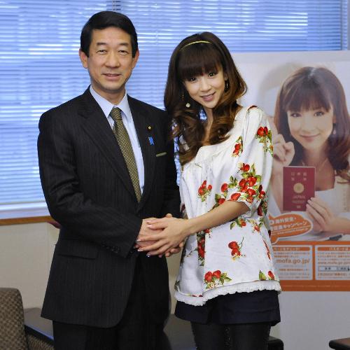 外務省が海外旅行を安全に楽しんでもらおうと今月から実施する「海外安全・パスポート管理促進キャンペーン」で、イメージキャラクターの「海外安全大使」を務めるタレントのほしのあきが11日、外務省を訪問した。