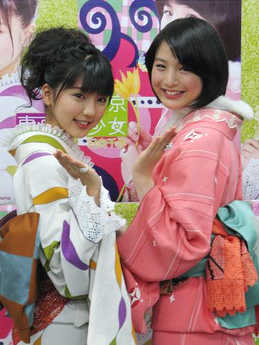 ともに17歳の美少女、日向千歩(ひなた・ちほ)と真野恵里菜(まの・えりな)がそれぞれ主演するBS―iの連続ドラマシリーズ「東京少女」(土曜後11・00)の制作発表が10日、都内で行われた。仲良く着物姿で登場。ファッション誌「non―no」の専属モデルにも決まった日向は「チャンスを生かして頑張りたい」。“ポスト松浦亜弥”と言われる真野も「しっかり演じます!」とヤル気満々だった。