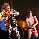 ラストは素っ裸になった。バックダンサーのPANCHO、夜王KING純一(ともに年齢非公表)に純白スーツを引き裂かれ、パンツ一丁に。ステージ上の階段を上がり途中で立ち止まると、禁断の1枚を下げ客席に投げ入れた。丸見えになったお尻に客席からは悲鳴に似た歓声と笑い声。そのまま階段を上りきり、顔だけ振り返ってステージ後方に消えていった。