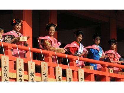 ミス日本の宮田麻里乃さん(17)が4日、東京・日野市の高幡不動尊で豆まきを行った。選出後初の大仕事に「遠くまで投げられるよう頑張りました」と笑顔。ほか4人のミスとともに着物姿で登場。