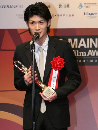 2008年(第63回)毎日映画コンクールの表彰式が4日、東京・渋谷区のセルリアンタワー東急ホテルで行われた。スポニチグランプリ新人賞に輝いた「奈緒子」の三浦春馬(18)は将来の主演賞受賞に思いをはせた。