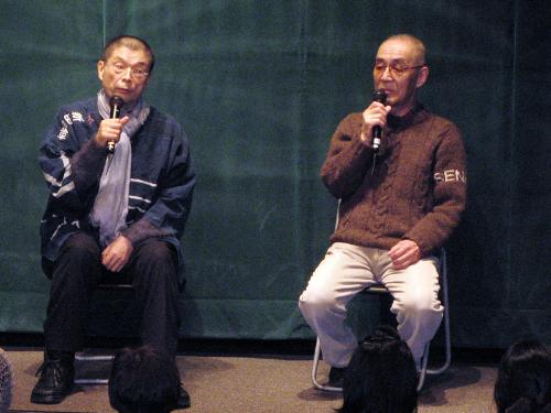 落語家柳家小三治(69)を3年半にわたって追い続けたドキュメンタリー映画「小三治」(監督康宇政)が21日、東京・ポレポレ東中野で初日を迎え、小三治と入船亭扇橋(77)が舞台あいさつを行った。03年9月の開館以来初めてという各回満員(1日4回上映、定員110人)の盛況に小三治も照れくさそう。「監督がしつこくいやらしく追っかけてきてイヤになったけど、見てくれた方がいいよって言ってくれてる。私は見ませんがね」ととぼけたあいさつで沸かせた。