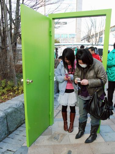 人気音楽ユニット「GReeeeN」のモニュメントが福島・郡山駅前に建立され、除幕式が11日行われた。メンバー4人が歯科医を目指して郡山市内の大学に在学していたため、地元の青年会議所が市のシンボルにしようと建立。鉄製の扉で縦2・1メートル、横1メートル。昨年12月発売の曲「扉」と1月発売の「歩み」にちなみ、扉の下にはメンバーの足形が刻まれている。ファン約300人を前に、関係者から「いつも応援してくれている市民の方々に向けて、今度は私たちがいろんな意味で背中を押してあげたいと考えました」とするメンバーのコメントが読み上げられた。地元の主婦緑川裕美さん(47)は「デビュー前にこの広場でライブをやっていた時からのファン。感動の一言です」と喜んだ。