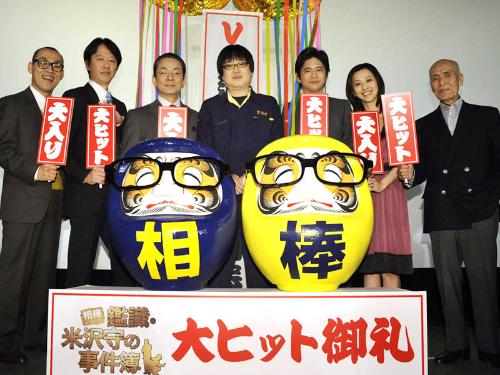昨年大ヒットした映画「相棒―劇場版―」のスピンオフ作品「鑑識・米沢守の事件簿」(監督長谷部安春)が28日、公開され東京・丸の内TOEI(2)では主演の六角精児(46)らが舞台あいさつを行った。初の主演作で「脇役を30年間やってきたご褒美かなと思ったが、そんなもんじゃない。それ以上のものがあった。“相棒”シリーズはまだまだ広がっていくと思う」と感慨深げ。水谷豊(56)、萩原聖人(37)らも出席。