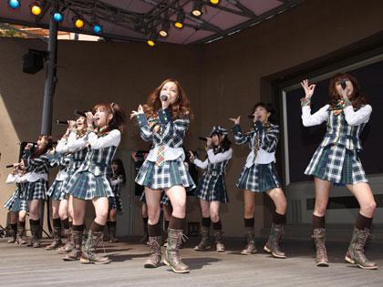 東京・秋葉原を拠点に活動するアイドルグループ「AKB48」が29日、都内で新曲「10年桜」の発売記念イベントを行った。選抜メンバー12人が参加し、元気いっぱいに同曲を披露。前田敦子(17)は「たくさんの方が来てくれて私たちもビックリしています」とあいさつ。大島麻衣(21)は4月26日に東京・渋谷のNHKホールで行われる公演で同グループを卒業する。