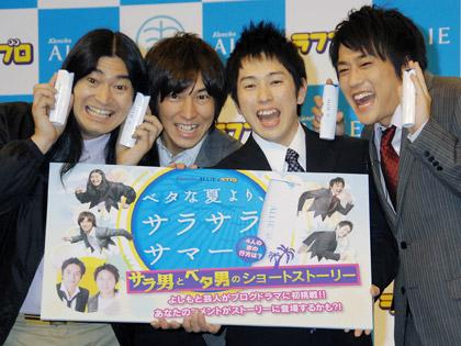 カネボウ化粧品の日焼け止めブランド「アリィー」のPRで、人気お笑いコンビ、ハイキングウォーキング(鈴木Q太郎、松田洋昌)とフルーツポンチ(村上健志、亘健太郎)が、30日間連続の恋愛ドラマを特設ブログ内で演じる企画が始まり、東京都内で記者発表会が開かれた。