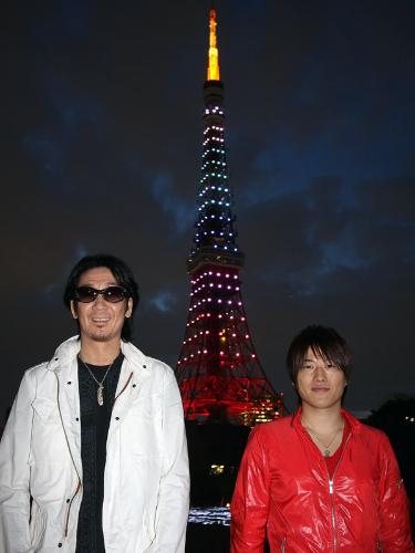 男性デュオ「コブクロ」が新曲「虹」の発売記念イベントを15日夜、東京タワーの大展望台で行った。曲名にちなみタワーが午後6時から深夜0時まで虹色にライトアップされた。小渕健太郎(32)は「真っ赤なタワーが虹色に染まるとは。昼間にかかる虹とは違って、夜になればなるほど鮮やか」と興奮。展望台には抽選で30人を招待し、同曲などを披露した。