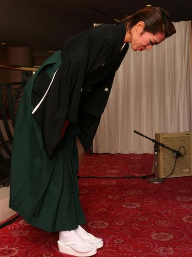 引退会見を終え深々と一礼する安蘭けい