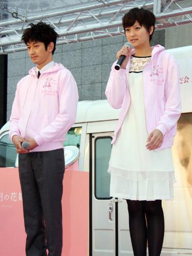 榮倉奈々(21)が6日、都内で主演映画「余命1ヶ月の花嫁」の公開直前トークショーに臨んだ。この日は、劇中のヒロインである24歳で乳がんのため死去した長島千恵さんの三回忌。途中、涙で言葉に詰まる場面もあったが、「千恵さんが見守ってくれたから無事に撮影ができました」と話した。恋人役の瑛太(26)も参加した。9日公開。