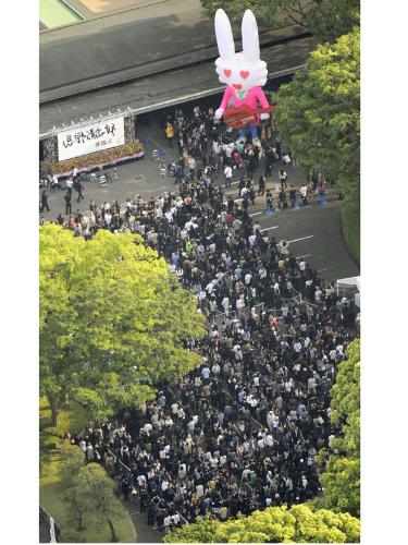 生前の歌声が大音量で流れる中、弔問の列が延びた。その距離4・5キロ。最寄りの東京メトロ乃木坂駅と青山一丁目駅から、折り返し地点を3カ所作っても列は続き、近くの青山公園にも待機場所をもうけたほど。式が始まった正午から夕方になっても長さは変わらず、午後10時40分の閉門まで途切れなかった。