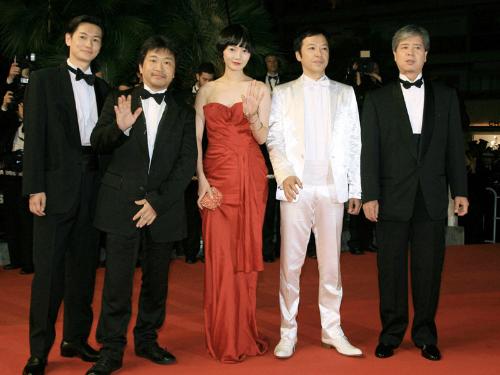 是枝裕和監督(46)の新作「空気人形」が14日夜(日本時間15日朝)、フランスで開催中の第62回カンヌ国際映画祭の「ある視点」部門で公式上映された。ビニール製の空気人形がレンタルビデオ店の店員に恋をする純愛ファンタジー。主演の韓国人女優ペ・ドゥナ(29)やARATA(34)、板尾創路(45)らがレッドカーペットを歩いて会場入りし、上映後は約2分間の拍手を受けた。白いタキシード姿の板尾は「言葉で表せないムードがありますね」と雰囲気を満喫していた。日本では秋に公開の予定。