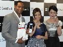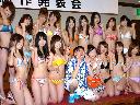 「スカパー!夏☆アイドルオールスター水泳大会2009」の制作発表会に出席したイジリー岡田(前列左から4人目)と加護亜依(同5人目)ら