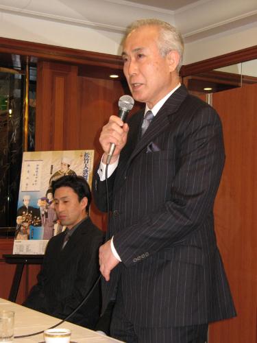 歌舞伎俳優の中村吉右衛門(65)市川染五郎(36)らが28日、都内で「松竹大歌舞伎」巡業公演への抱負を語った。演目は、親子の感動物語「沼津」と舞踊「奴道成寺」など。6月30日から1カ月間で全国47公演。吉右衛門は「薄れつつある家族愛を味わっていただきたい」とアピール。