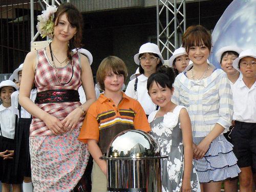 映画「ノウイング」のイベントに出席した(左から)リア・ディゾン、チャンドラー・カンタベリー、さくらまや、安達祐実