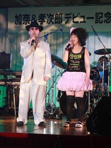 異色のデュエット「加奈&孝次郎」のデビュー曲「毎日が誕生日」のお披露目会が1日、東京・目黒区の目黒雅叙園で行われた。