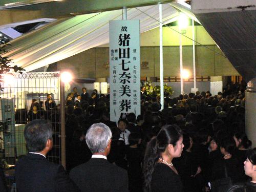 勝野七奈美さんの通夜が営まれた東京都新宿区の千日谷会堂