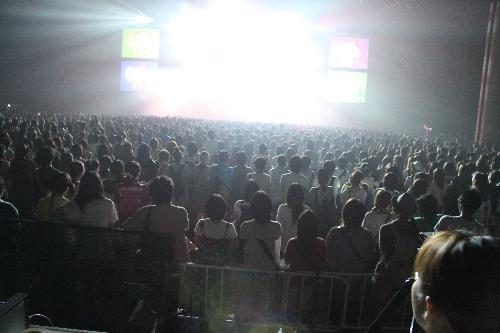 で、現場。オヤジ世代、見事なまでにいません。いるのはオヤジの娘世代。しかも二人連れが多いですな。女の子同士の。ノリは完全にアイドルのコンサート。くる場所を間違えてしまいました。