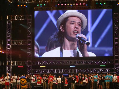 【LIVE STAND最終日】エンディングでは出演者がステージ上に整列してテーマソング「LAUGH!LAUGH!LAUGH!」を大合唱。歌い終えると、11日に元「モーニング娘。」でタレントの藤本美貴(24)と結婚した品川庄司の庄司智春(33)が「一言だけいいですか?」と中央へ移動。マイクを手にし、突然「ミキティーーー!!」と妻の愛称を大絶叫していた。