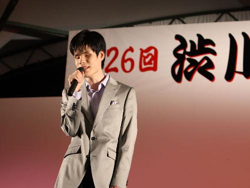 昨年2月に「雨恋々」でデビューし、同年の「日本有線大賞新人賞」を受賞した全盲の演歌歌手・清水博正(18)が地元の群馬県渋川市で開かれた「第26回渋川へそ祭り」に参加し、特設野外ステージでミニコンサートを行った。