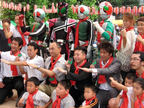 中年リーマンも興奮!仮面ライダーが祭り登場