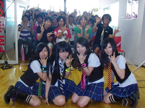 結成の地への里帰りにテンションは最高潮で、ドラムスのRINA(17)は「大阪の懐かしい、いいニオイがする。ここにずっとおりたいな」と興奮気味。ボーカル・HARUNA(21)は「こんなにファンと近い距離のイベントは初体験。緊張したけどうれしかった」と笑顔をはじけさせた。この模様は5日、同局でオンエア。