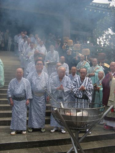 本堂での円朝および物故落語家法要や扇子供養には落語芸術協会の桂歌丸会長(72)も参加。最年長の三遊亭金馬(80)らによる奉納落語会や30を超える“芸人屋台”など盛りだくさんの内容で、三遊亭円歌最高顧問(77)、柳家小三治(69)らから二代目林家三平(38)らまで200人を超える落語家たちがサービスした。