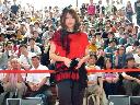 三本締めで舞台を終える(左から)松たか子、薫子(松たか子の右隣の女の子)、松本幸四郎、市川染五郎(松本幸四郎の右後方)、松本紀保、金太郎(松本紀保の右隣の男の子)