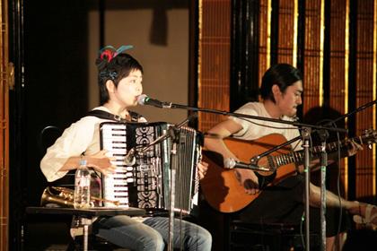 “アコーディオンを抱えた歌姫”お寺で幻想的ライブ