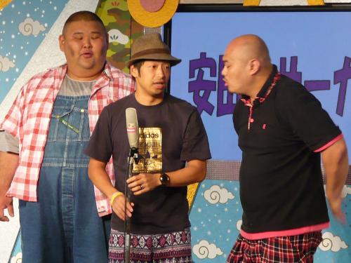 お笑いトリオ「安田大サーカス」の団長・安田裕己(35)が21日、大阪市浪速区の通天閣劇場でタレント・岩田さち(27)との結婚後初舞台となる公演に出演した。