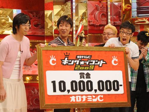 優勝賞金1000万円をかけたコントNo・1決定戦「キングオブコント2009」の決勝が22日、都内で開催され、3人組「東京03」が2代目王者に輝いた。第1回の2146組を上回る2584組の頂点に立った瞬間、豊本明長(34)、飯塚悟志(36)、角田晃広(35)は、驚きの表情を浮かべ「こんなの初めて~」と喜びをかみしめた。