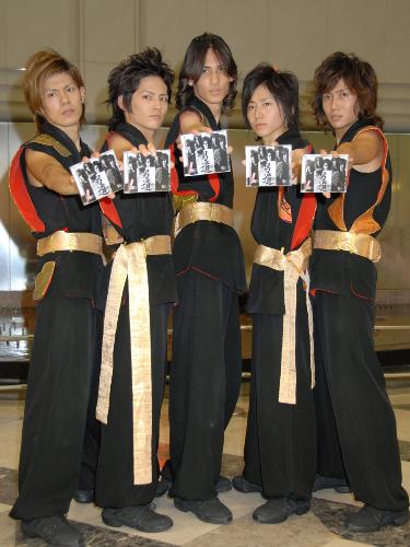 会場には女性ファンら約2000人が押しかけ、京友禅の衣装を着た5人がデビュー曲「男道」などを熱唱すると黄色い声援で埋め尽くされた。
