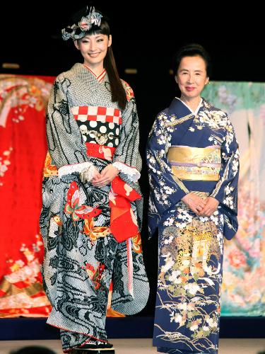 20日に演出家で俳優の長塚圭史と結婚した常盤貴子が23日、「第1回きものコーディネイト大賞」を受賞し、八千草薫と東京都内での表彰式に出席。約半世紀前の絞りの着物に最新の帽子姿の常盤は「私事ですが、おめでたいこと続きでうれしいです」と喜びを語った。