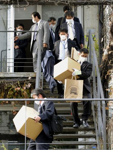 写真家篠山紀信さんの事務所から押収物を運び出す警視庁の捜査員ら