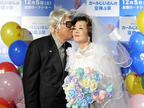ディズニー映画「カールじいさんの空飛ぶ家」のジャパンプレミアに出席した野村克也、沙知代夫妻