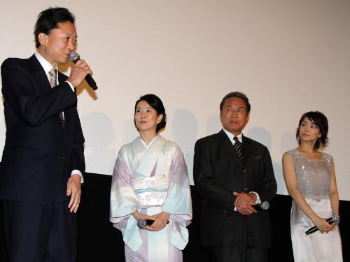 女優・吉永小百合(64)が笑福亭鶴瓶(57)と姉弟役を演じた映画「おとうと」の完成披露試写会が1日、都内で行われ、鳩山由紀夫首相が“サプライズゲスト”で参加した。
