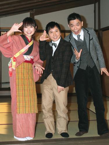 NHK「爆笑問題のもうひとつの“龍馬伝”」の記者会見に出席した(右から)爆笑問題の太田光、田中裕二ら