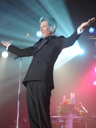 単独ステージは84年の日本武道館公演以来。「ディナーショーは人生初めて。緊張してます」とあいさつすると、女性ファンは「ひろし~」と絶叫。ヒット曲「泣かないで」や、俳優デビュー作となった76年の映画「暴力教室」の挿入歌でロックバンド「クールス」時代の「恋のテディーボーイ」も約30年ぶりに熱唱した。故石原裕次郎さんの「二人の世界」をテーブル席を回って握手しながら歌うと、席を立って追い掛ける中年女性が続出。ハンカチを手に舘の額とうなじの汗をわれ先にとぬぐった。
