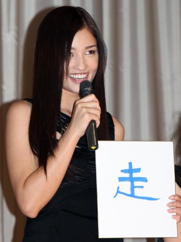 女狙撃手が仮想現実空間で巨大モンスターと戦う物語。共演の菊地凛子(28)佐伯日菜子(32)と今年を表す漢字一文字を発表。映画、ドラマに引っ張りだこだった黒木は「走」としたため「走ったなあという感じ。あと自転車が好きでずっと乗っていたので、そんな意味も込めました」と笑顔を振りまいた。