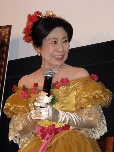 女優の中村玉緒(70)が21日、都内で開かれた映画「ヴィクトリア女王 世紀の愛」(26日公開)の試写会で女王様ファッションを披露した。