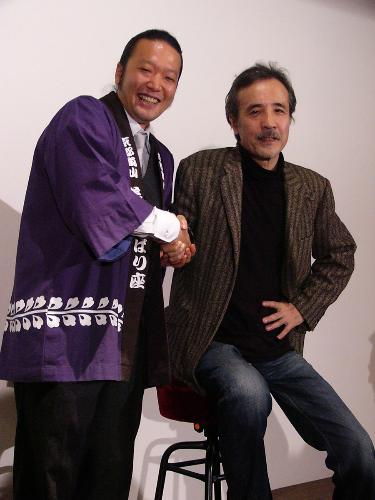 岡林信康(右)はひばりさんの長男・加藤和也氏と固い握手