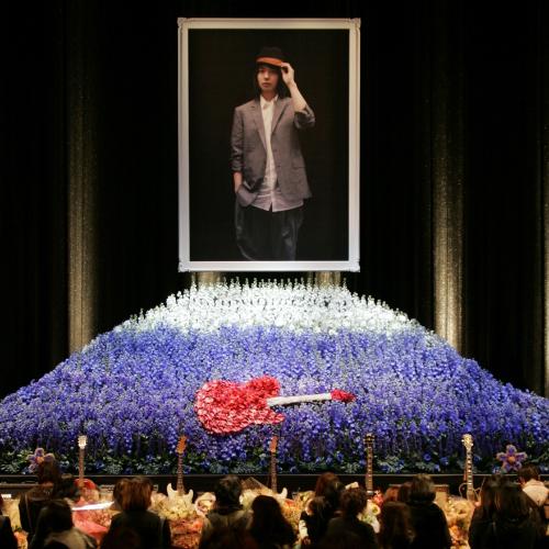 残されたメンバー3人のほか、「真心ブラザーズ」「チャットモンチー」のメンバーが参列。ファン約1万人がのべ約6時間にわたって献花した。