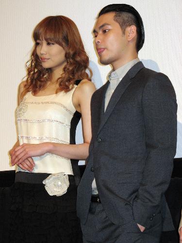 舞台あいさつでは客席から「おめでとう!」の声。左手薬指の結婚指輪がキラリ。恥ずかしくなったのか、途中からは手をポケットに突っ込んだものの「この映画は嫁にも薦めたい」と自信の表情。「一緒に見たい」と照れながら付け加えた。共演の佐藤江梨子(28)は「触ったら壊れそうな少年を演じていたのに、結婚?あれーっ?どういうこと?と思った」と冷やかし「私も“エリ”だからね」と続けた。