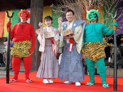 鏡五郎&岩本公水 東京・護国寺で節分の豆まき